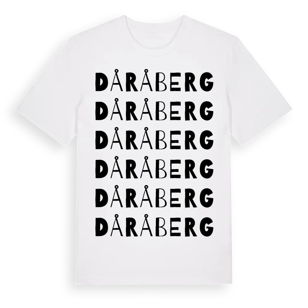 Dåråberg ordlek t-shirt är inspirerad av byn Dåråberg i Dalarnas län, Sverige. Tröjan är designad för dig som har en speciell koppling till platsen – oavsett om du bor här, har rötterna här eller bara älskar Dåråberg.
