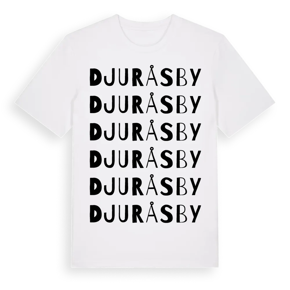 Djurås By ordlek t-shirt är inspirerad av byn Djurås By i Dalarnas län, Sverige. Tröjan är designad för dig som har en speciell koppling till platsen – oavsett om du bor här, har rötterna här eller bara älskar Djurås By.