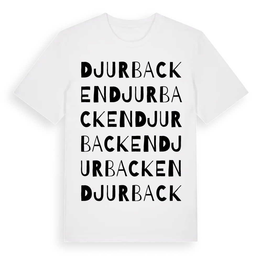 En ordlek byggd på Djurbackens namn. Subtilt och klurig – ett motiv som bara de som verkligen känner platsen fullt ut förstår. Premium bomull, unisex – från Djurbacken i Dalarnas län.