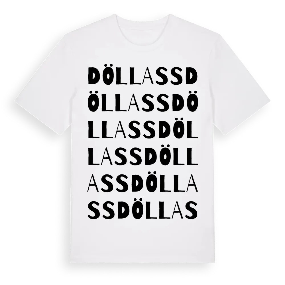Döllass ordlek t-shirt är inspirerad av Döllass i Dalarnas län, Sverige. Tröjan är designad för dig som har en speciell koppling till platsen – oavsett om du bor här, har rötterna här eller bara älskar Döllass.
