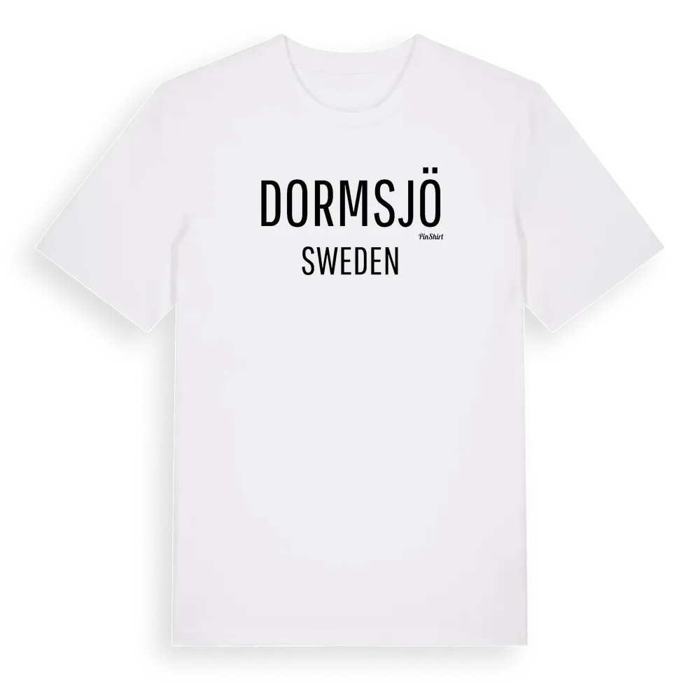 Dormsjö i Sverige t-shirt är inspirerad av byn Dormsjö i Dalarnas län, Sverige. Tröjan är designad för dig som har en speciell koppling till platsen – oavsett om du bor här, har rötterna här eller bara älskar Dormsjö.