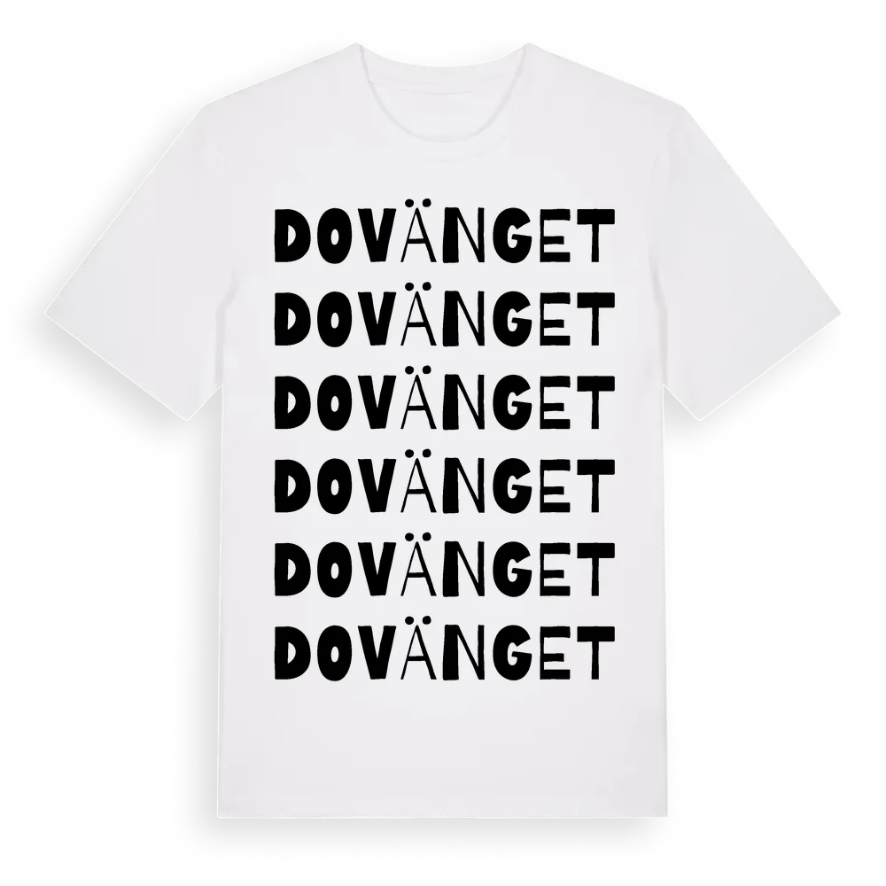 En ordlek byggd på Dovängets namn. Subtilt och klurig – ett motiv som bara de som verkligen känner platsen fullt ut förstår. Premium bomull, unisex – från Dovänget i Dalarnas län.