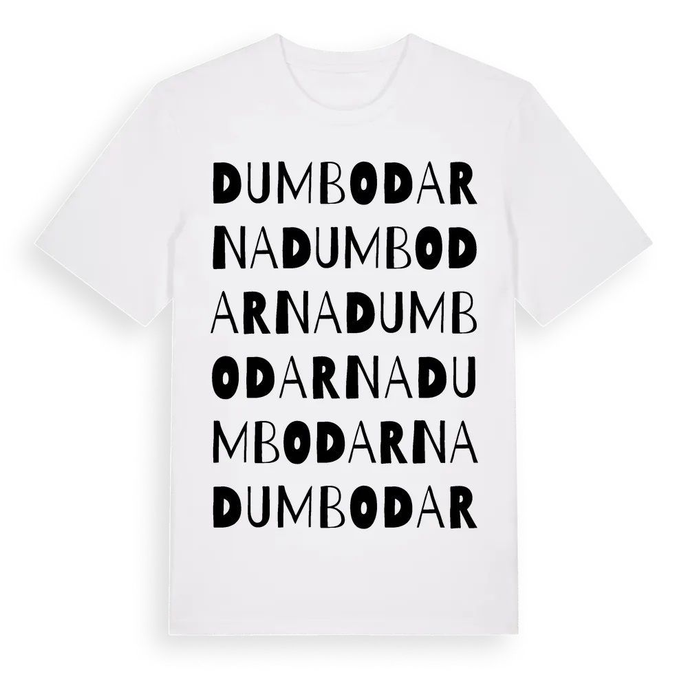 Dumbodarna ordlek t-shirt är inspirerad av Dumbodarna i Dalarnas län, Sverige. Tröjan är designad för dig som har en speciell koppling till platsen – oavsett om du bor här, har rötterna här eller bara älskar Dumbodarna.