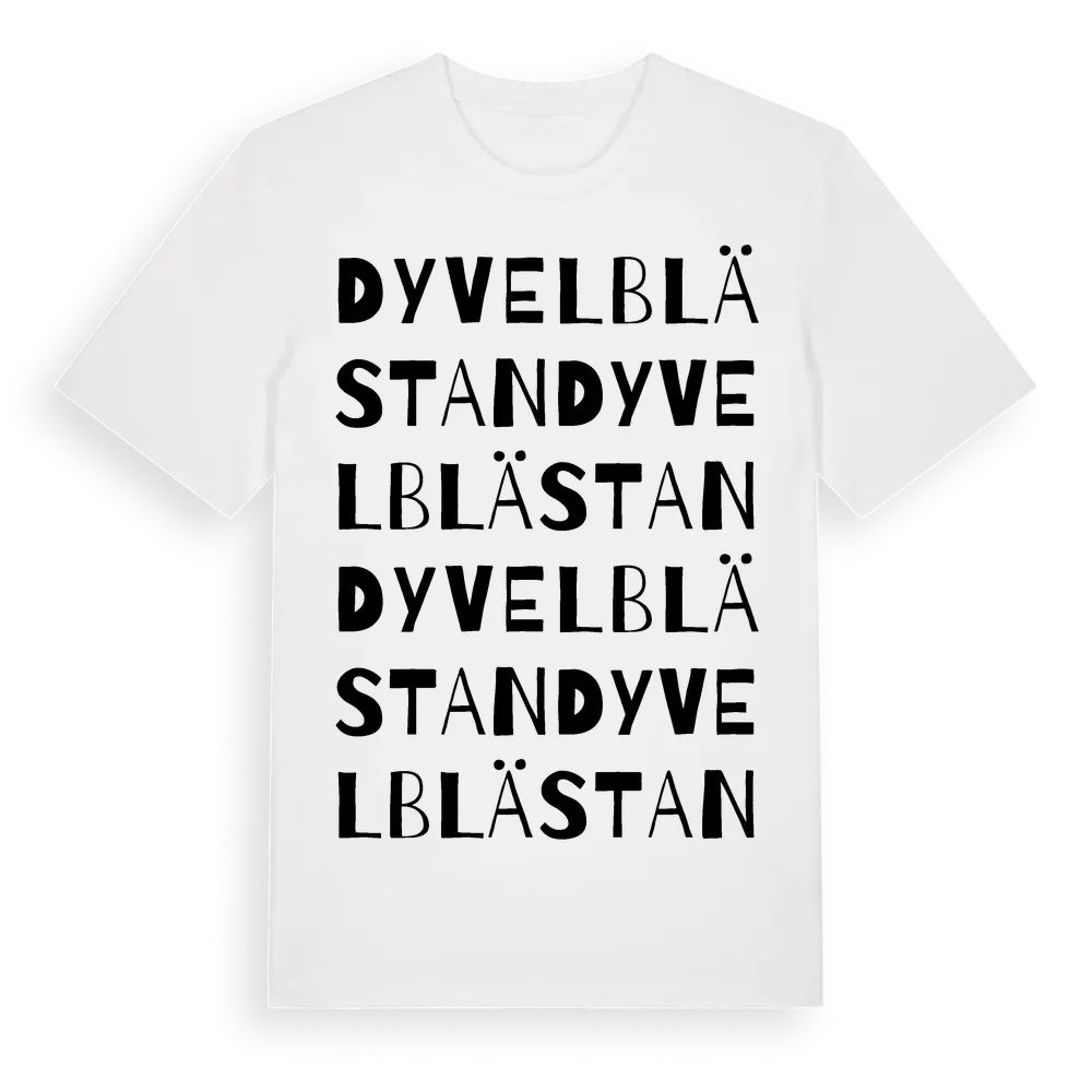 Dyvelblästan ordlek t-shirt är inspirerad av byn Dyvelblästan i Dalarnas län, Sverige. Tröjan är designad för dig som har en speciell koppling till platsen – oavsett om du bor här, har rötterna här eller bara älskar Dyvelblästan.