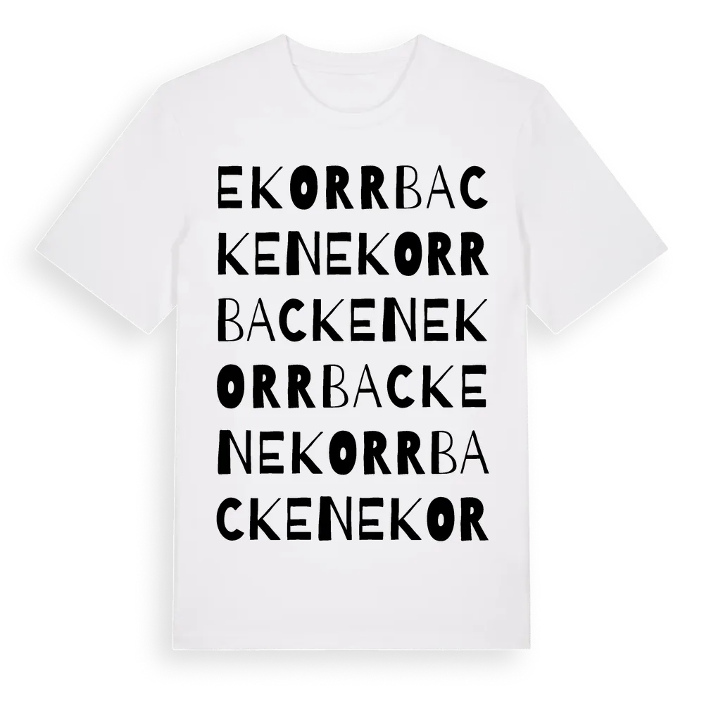 Ekorrbacken ordlek t-shirt är inspirerad av Ekorrbacken i Dalarnas län, Sverige. Tröjan är designad för dig som har en speciell koppling till platsen – oavsett om du bor här, har rötterna här eller bara älskar Ekorrbacken.