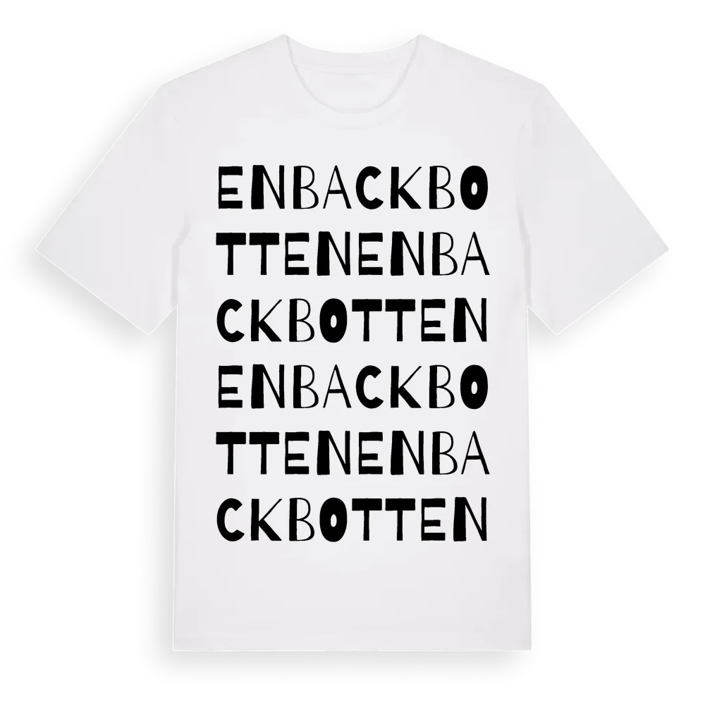 En ordlek byggd på Enback Bottens namn. Subtilt och klurig – ett motiv som bara de som verkligen känner platsen fullt ut förstår. Premium bomull, unisex – från Enback Botten i Dalarnas län.