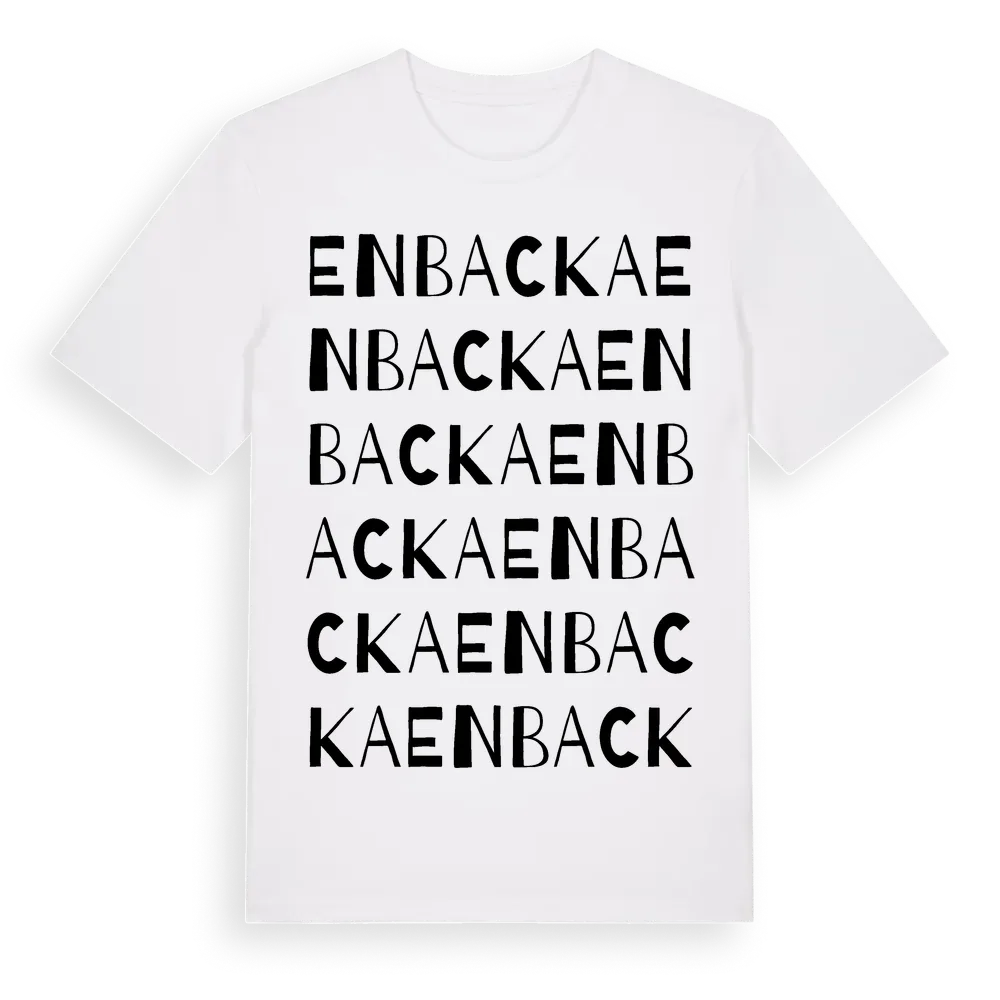 En ordlek byggd på Enbackas namn. Subtilt och klurig – ett motiv som bara de som verkligen känner platsen fullt ut förstår. Premium bomull, unisex – från byn Enbacka i Dalarnas län.