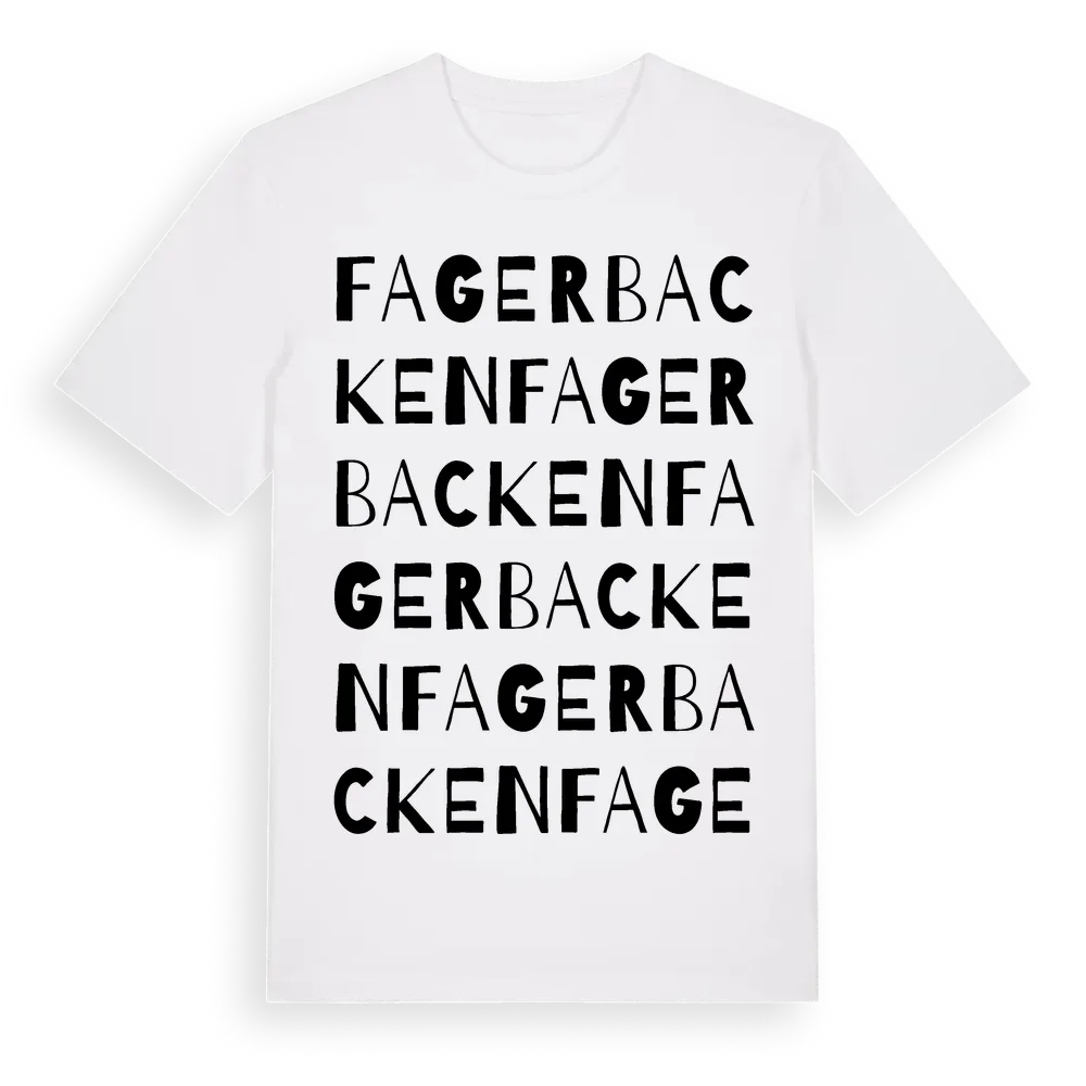 Fagerbacken ordlek t-shirt är inspirerad av byn Fagerbacken i Dalarnas län, Sverige. Tröjan är designad för dig som har en speciell koppling till platsen – oavsett om du bor här, har rötterna här eller bara älskar Fagerbacken.