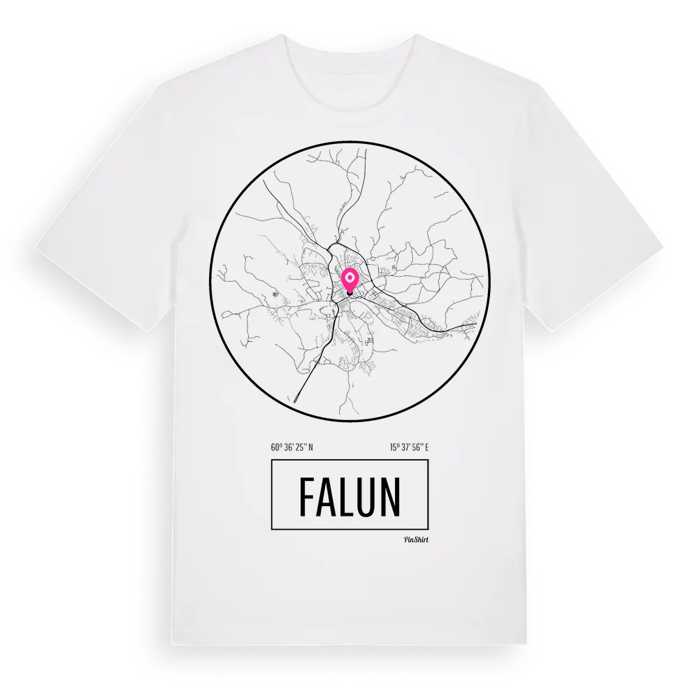 Falun t-shirt är inspirerad av staden Falun i Dalarnas län, Sverige. Tröjan är designad för dig som har en speciell koppling till platsen – oavsett om du bor här, har rötterna här eller bara älskar Falun.