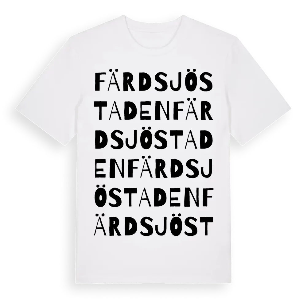 Färdsjöstaden ordlek t-shirt är inspirerad av Färdsjöstaden i Dalarnas län, Sverige. Tröjan är designad för dig som har en speciell koppling till platsen – oavsett om du bor här, har rötterna här eller bara älskar Färdsjöstaden.