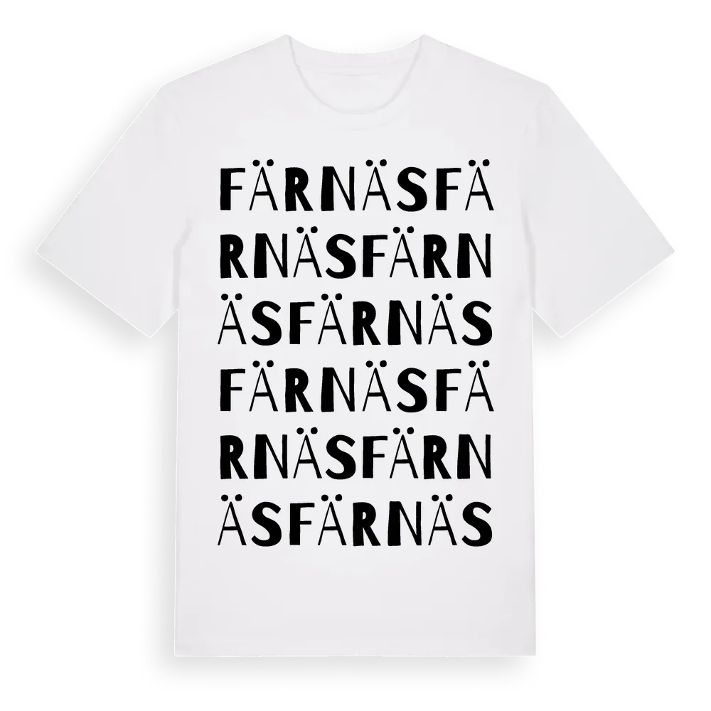 Färnäs ordlek t-shirt är inspirerad av stadsdelen Färnäs i Dalarnas län, Sverige. Tröjan är designad för dig som har en speciell koppling till platsen – oavsett om du bor här, har rötterna här eller bara älskar Färnäs.