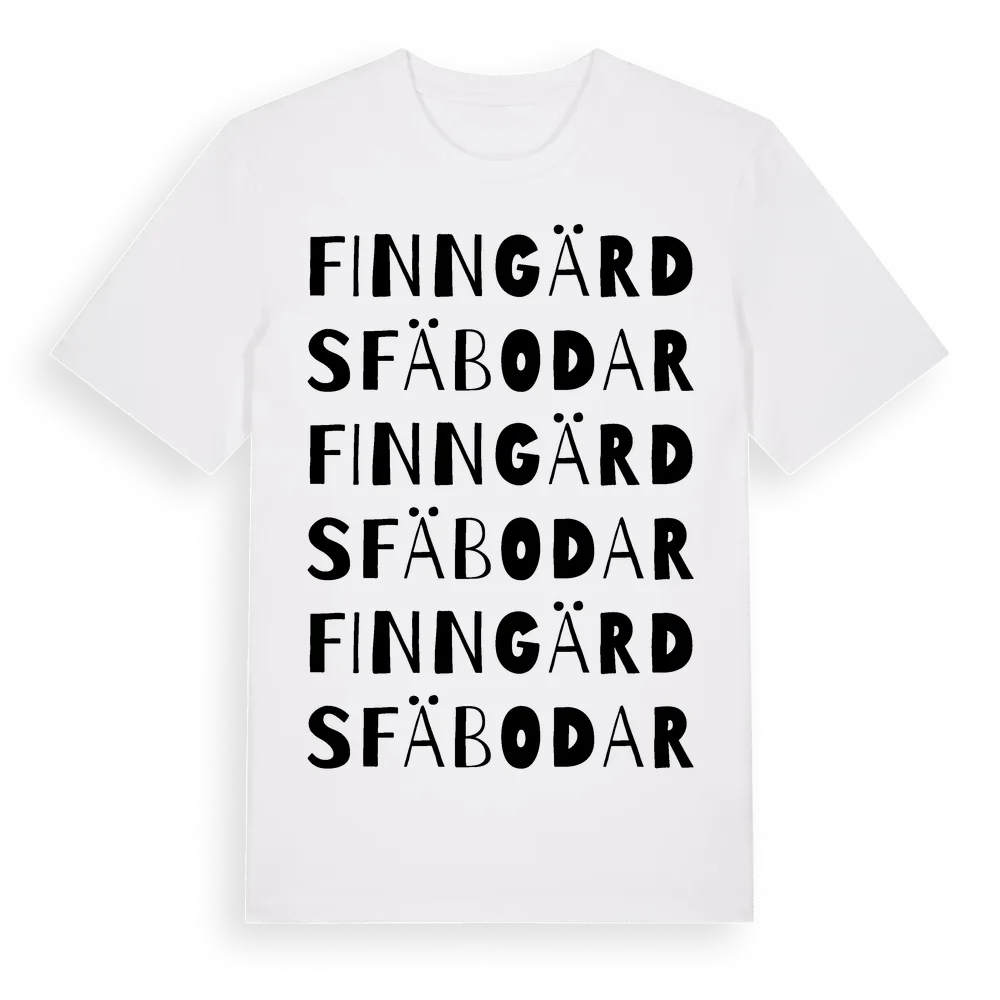 Finngärds Fäbodar ordlek t-shirt är inspirerad av byn Finngärds Fäbodar i Dalarnas län, Sverige. Tröjan är designad för dig som har en speciell koppling till platsen – oavsett om du bor här, har rötterna här eller bara älskar Finngärds Fäbodar.