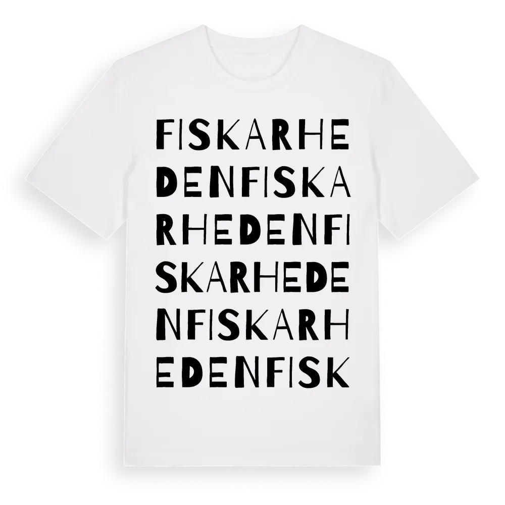Fiskarheden ordlek t-shirt är inspirerad av byn Fiskarheden i Dalarnas län, Sverige. Tröjan är designad för dig som har en speciell koppling till platsen – oavsett om du bor här, har rötterna här eller bara älskar Fiskarheden.