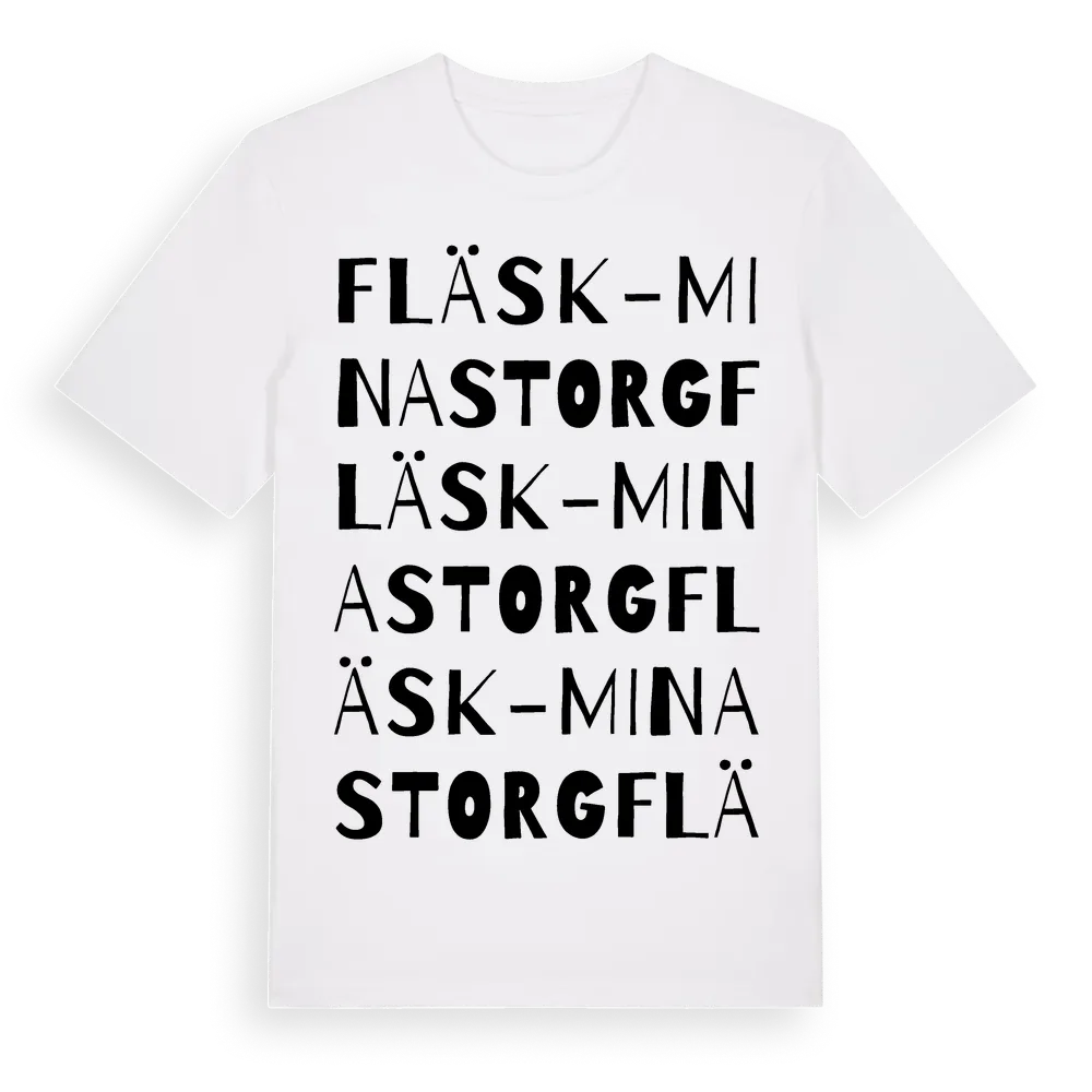 Fläsk-Minas Torg ordlek t-shirt är inspirerad av Fläsk-Minas Torg i Dalarnas län, Sverige. Tröjan är designad för dig som har en speciell koppling till platsen – oavsett om du bor här, har rötterna här eller bara älskar Fläsk-Minas Torg.