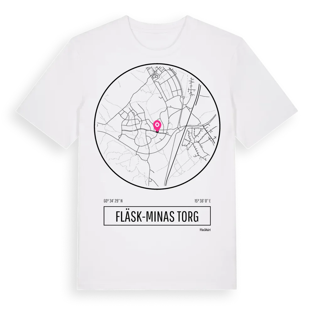 Fläsk-Minas Torg t-shirt är inspirerad av Fläsk-Minas Torg i Dalarnas län, Sverige. Tröjan är designad för dig som har en speciell koppling till platsen – oavsett om du bor här, har rötterna här eller bara älskar Fläsk-Minas Torg.