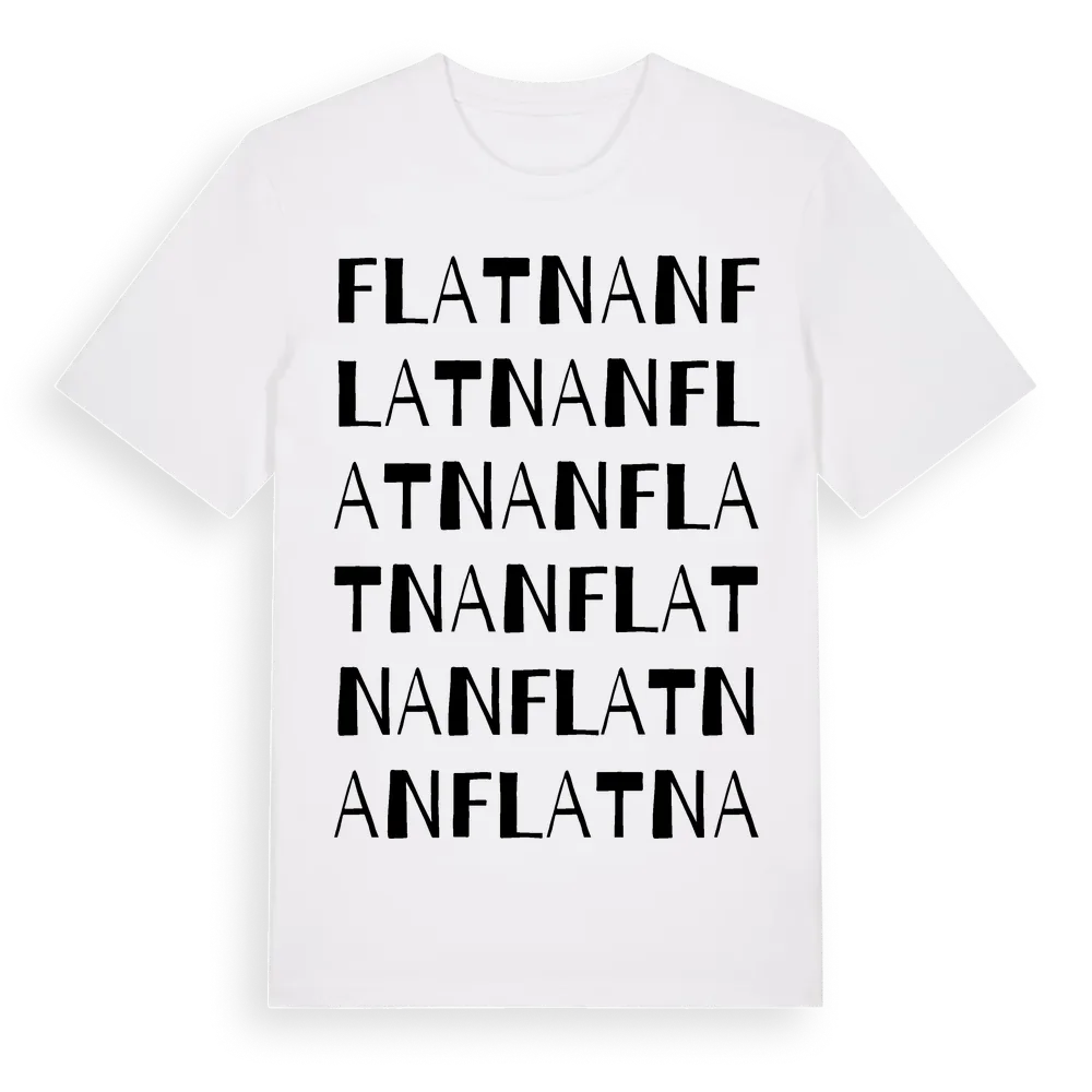 En ordlek byggd på Flatnans namn. Subtilt och klurig – ett motiv som bara de som verkligen känner platsen fullt ut förstår. Premium bomull, unisex – från Flatnan i Dalarnas län.