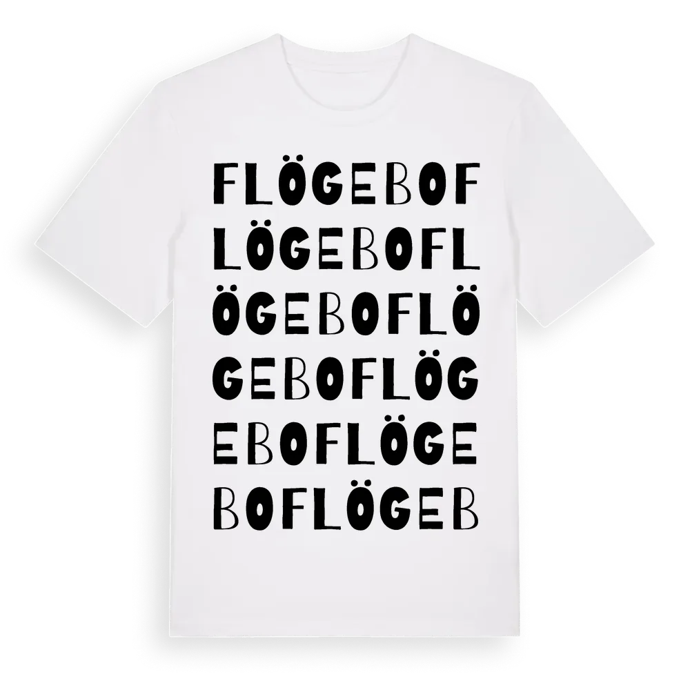 En ordlek byggd på Flögebos namn. Subtilt och klurig – ett motiv som bara de som verkligen känner platsen fullt ut förstår. Premium bomull, unisex – från Flögebo i Dalarnas län.