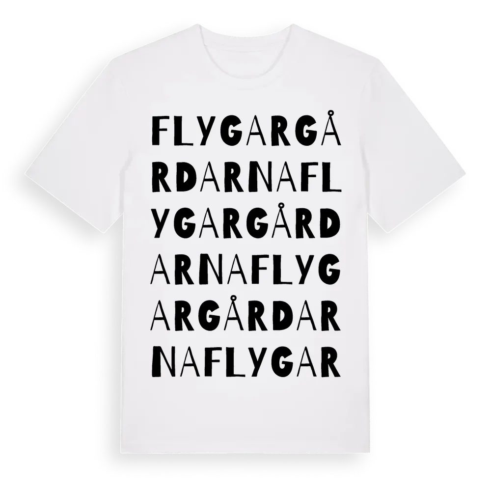 Flygargårdarna ordlek t-shirt är inspirerad av Flygargårdarna i Dalarnas län, Sverige. Tröjan är designad för dig som har en speciell koppling till platsen – oavsett om du bor här, har rötterna här eller bara älskar Flygargårdarna.