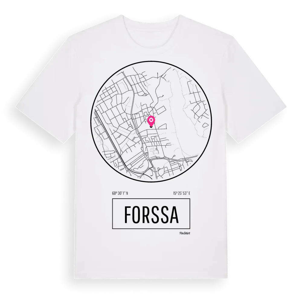 Forssa t-shirt är inspirerad av stadsdelen Forssa i Dalarnas län, Sverige. Tröjan är designad för dig som har en speciell koppling till platsen – oavsett om du bor här, har rötterna här eller bara älskar Forssa.