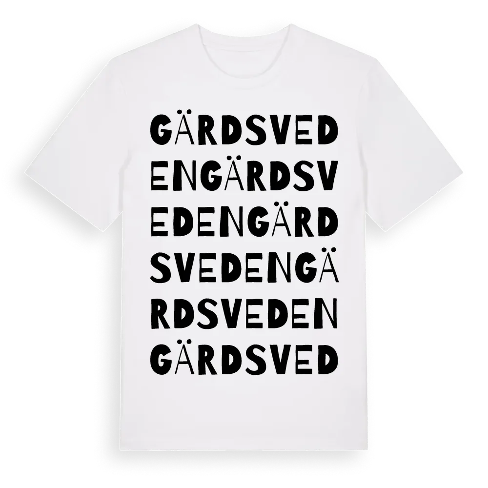 Gärdsveden ordlek t-shirt är inspirerad av byn Gärdsveden i Dalarnas län, Sverige. Tröjan är designad för dig som har en speciell koppling till platsen – oavsett om du bor här, har rötterna här eller bara älskar Gärdsveden.