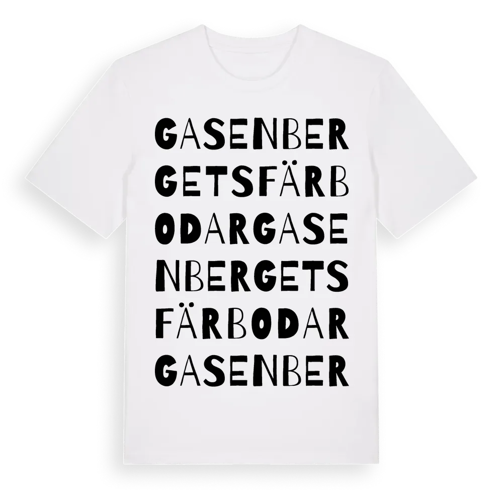 En ordlek byggd på Gasenbergets Färbodars namn. Subtilt och klurig – ett motiv som bara de som verkligen känner platsen fullt ut förstår. Premium bomull, unisex – från Gasenbergets Färbodar i Dalarnas län.