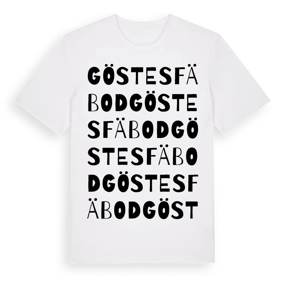 En ordlek byggd på Göstes Fäbods namn. Subtilt och klurig – ett motiv som bara de som verkligen känner platsen fullt ut förstår. Premium bomull, unisex – från Göstes Fäbod i Dalarnas län.