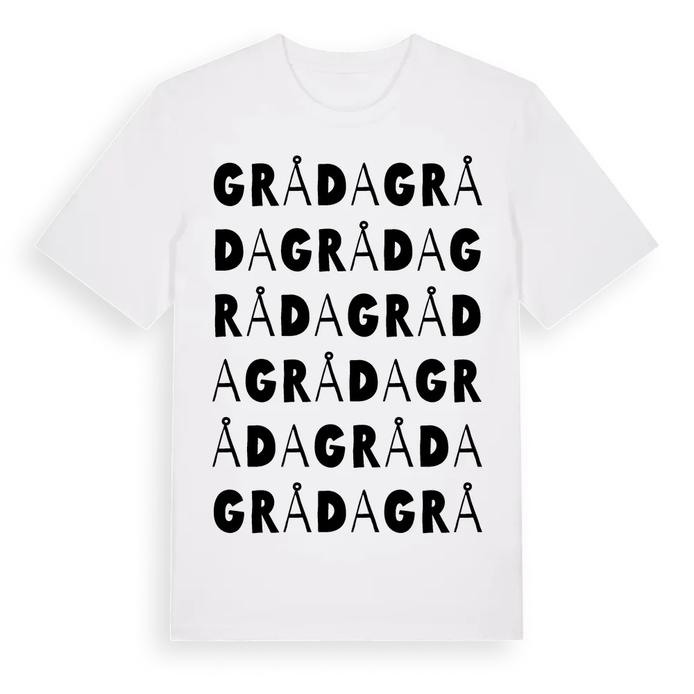 Gråda ordlek t-shirt är inspirerad av byn Gråda i Dalarnas län, Sverige. Tröjan är designad för dig som har en speciell koppling till platsen – oavsett om du bor här, har rötterna här eller bara älskar Gråda.