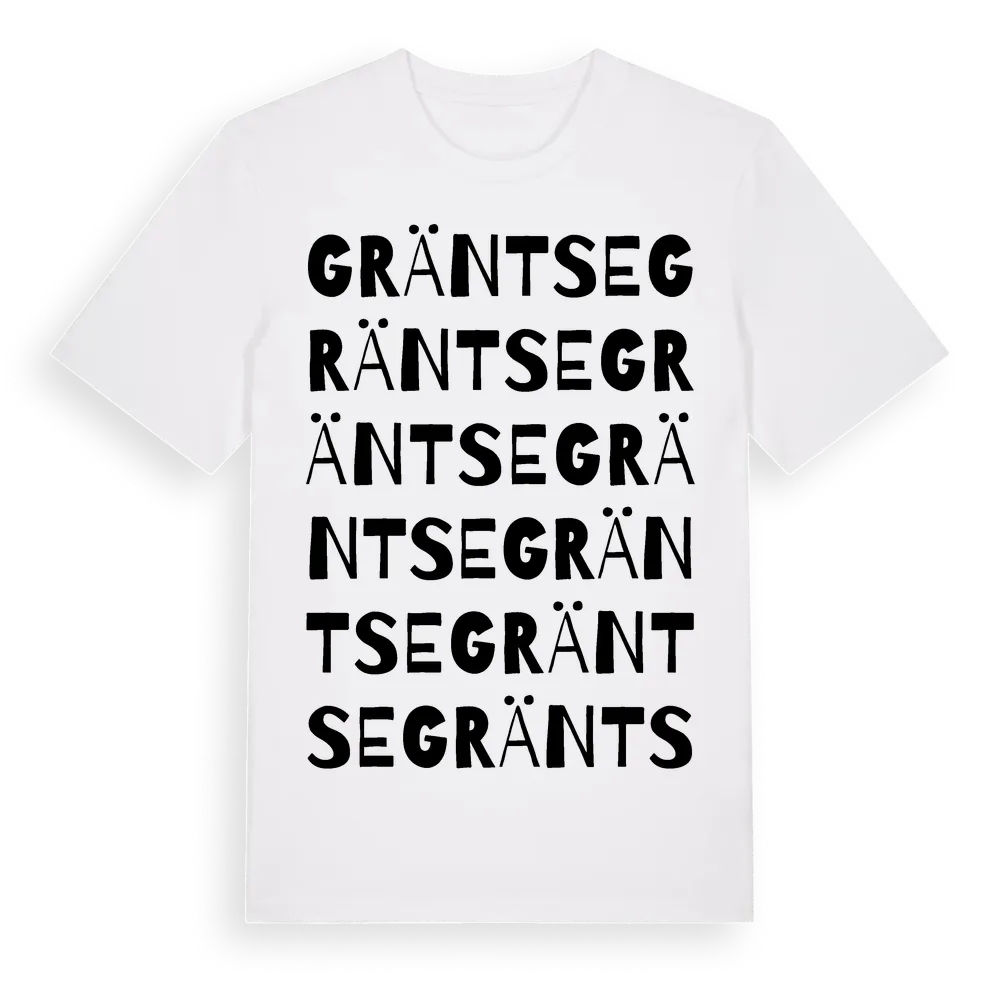 En ordlek byggd på Gräntses namn. Subtilt och klurig – ett motiv som bara de som verkligen känner platsen fullt ut förstår. Premium bomull, unisex – från Gräntse i Dalarnas län.