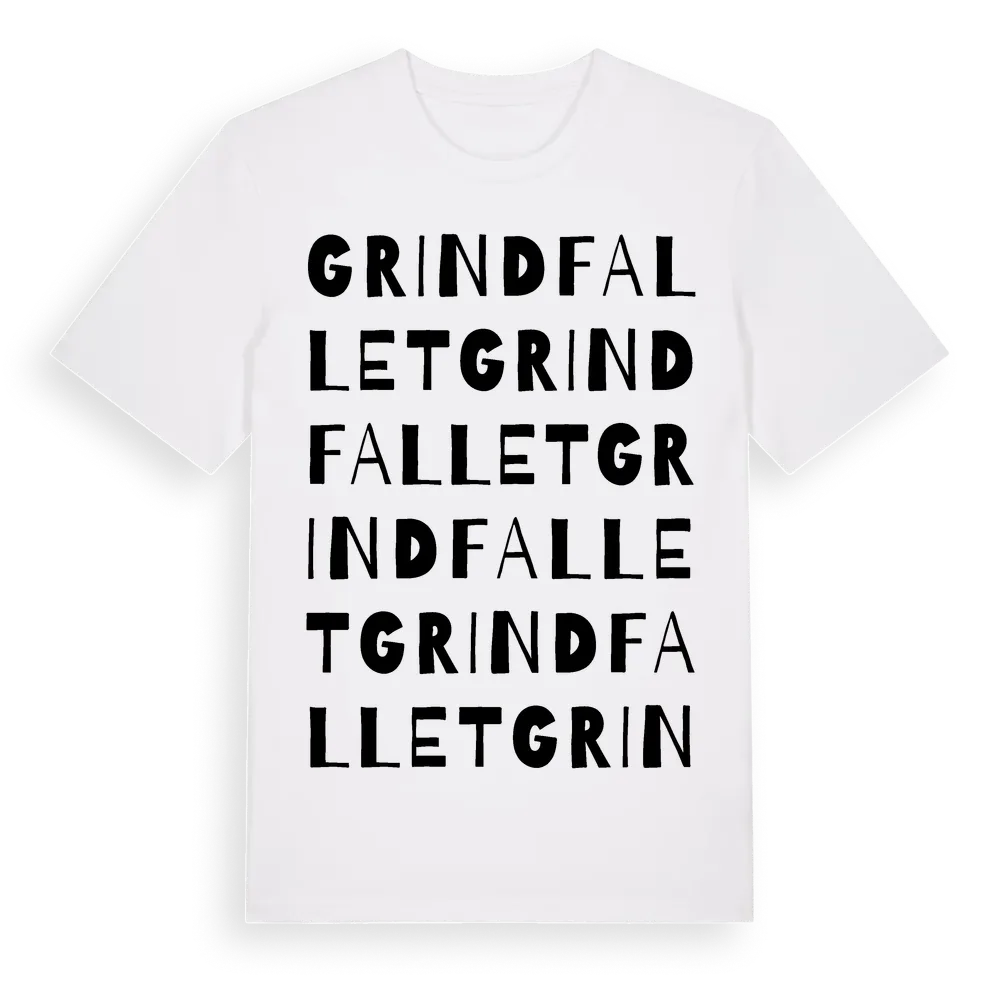 Grindfallet ordlek t-shirt är inspirerad av Grindfallet i Dalarnas län, Sverige. Tröjan är designad för dig som har en speciell koppling till platsen – oavsett om du bor här, har rötterna här eller bara älskar Grindfallet.