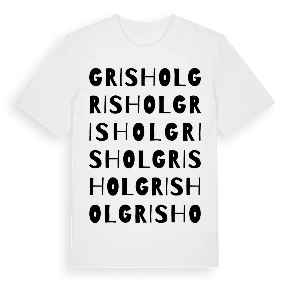 En ordlek byggd på Grishols namn. Subtilt och klurig – ett motiv som bara de som verkligen känner platsen fullt ut förstår. Premium bomull, unisex – från byn Grishol i Dalarnas län.