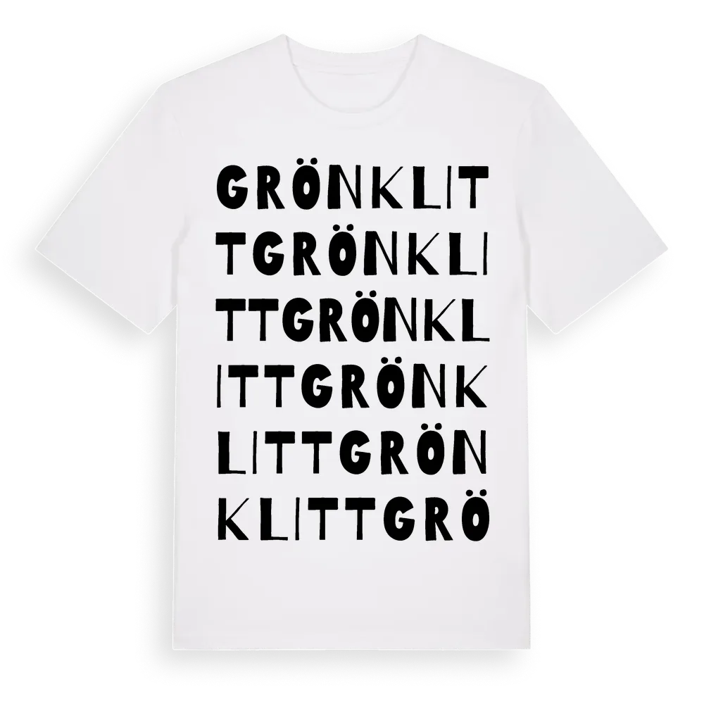 Grönklitt ordlek t-shirt är inspirerad av byn Grönklitt i Dalarnas län, Sverige. Tröjan är designad för dig som har en speciell koppling till platsen – oavsett om du bor här, har rötterna här eller bara älskar Grönklitt.
