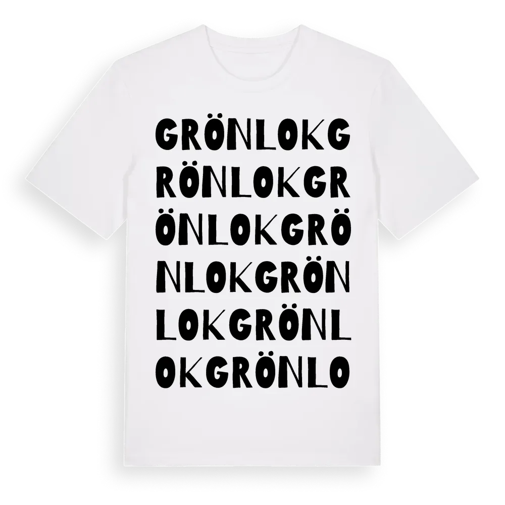 Grönlok ordlek t-shirt är inspirerad av Grönlok i Dalarnas län, Sverige. Tröjan är designad för dig som har en speciell koppling till platsen – oavsett om du bor här, har rötterna här eller bara älskar Grönlok.