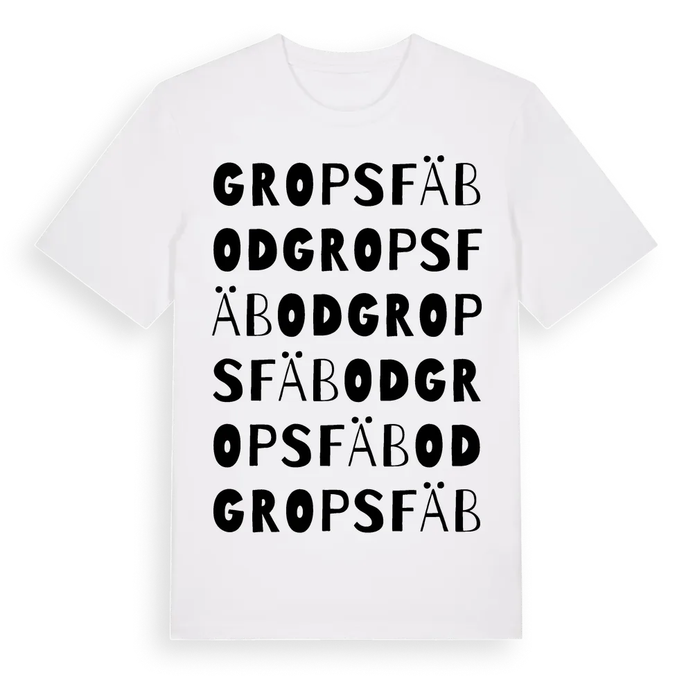 Grops Fäbod ordlek t-shirt är inspirerad av Grops Fäbod i Dalarnas län, Sverige. Tröjan är designad för dig som har en speciell koppling till platsen – oavsett om du bor här, har rötterna här eller bara älskar Grops Fäbod.