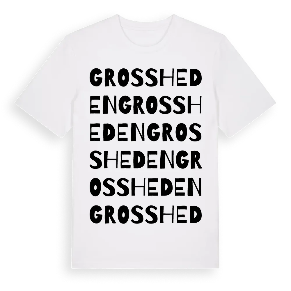 Grossheden ordlek t-shirt är inspirerad av byn Grossheden i Dalarnas län, Sverige. Tröjan är designad för dig som har en speciell koppling till platsen – oavsett om du bor här, har rötterna här eller bara älskar Grossheden.