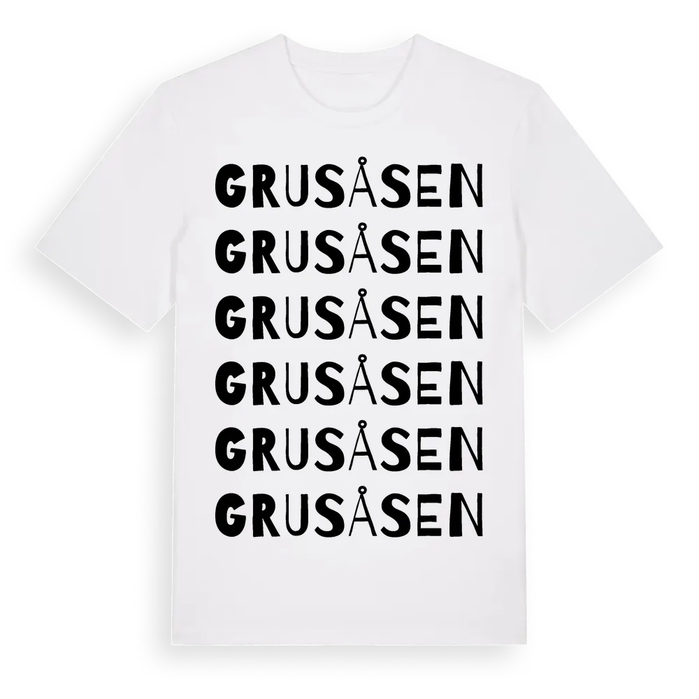 Grusåsen ordlek t-shirt är inspirerad av Grusåsen i Dalarnas län, Sverige. Tröjan är designad för dig som har en speciell koppling till platsen – oavsett om du bor här, har rötterna här eller bara älskar Grusåsen.