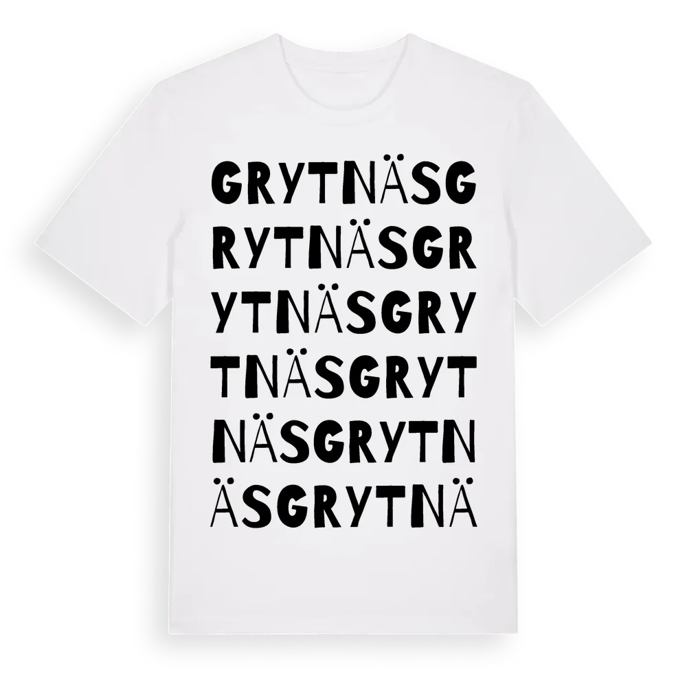 En ordlek byggd på Grytnäss namn. Subtilt och klurig – ett motiv som bara de som verkligen känner platsen fullt ut förstår. Premium bomull, unisex – från byn Grytnäs i Dalarnas län.
