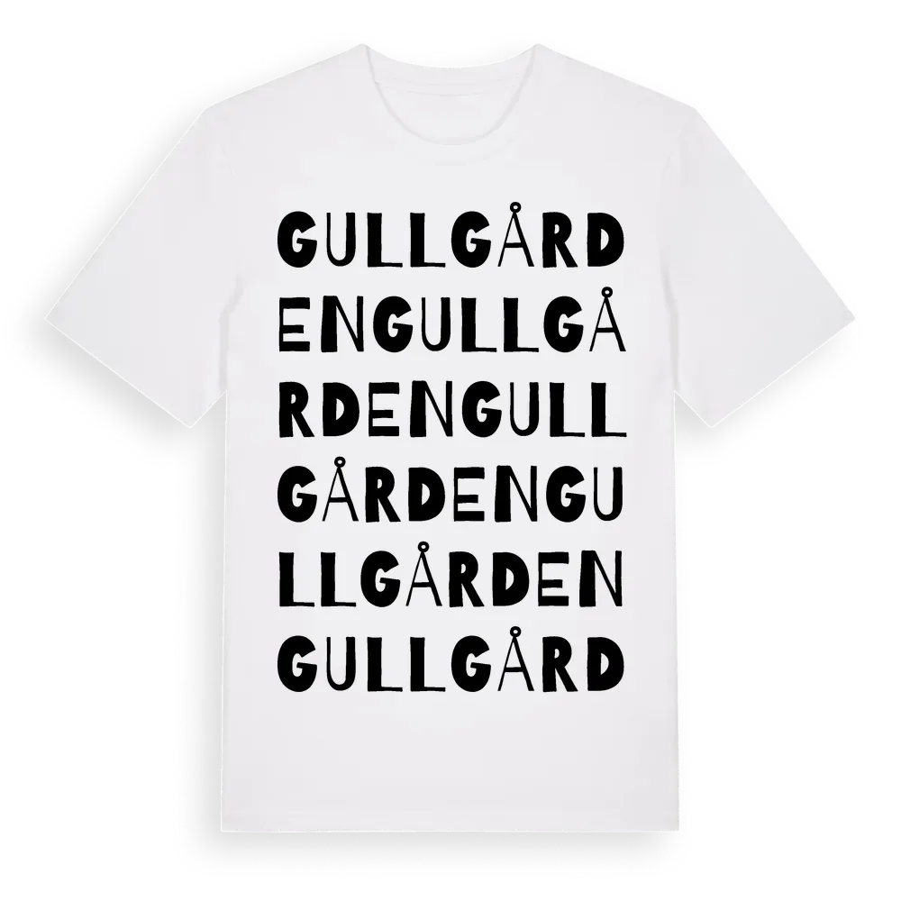 Gullgården ordlek t-shirt är inspirerad av Gullgården i Dalarnas län, Sverige. Tröjan är designad för dig som har en speciell koppling till platsen – oavsett om du bor här, har rötterna här eller bara älskar Gullgården.