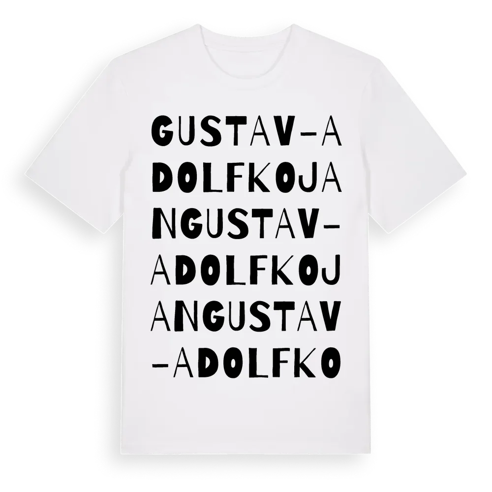 Gustav-Adolfkojan ordlek t-shirt är inspirerad av Gustav-Adolfkojan i Dalarnas län, Sverige. Tröjan är designad för dig som har en speciell koppling till platsen – oavsett om du bor här, har rötterna här eller bara älskar Gustav-Adolfkojan.