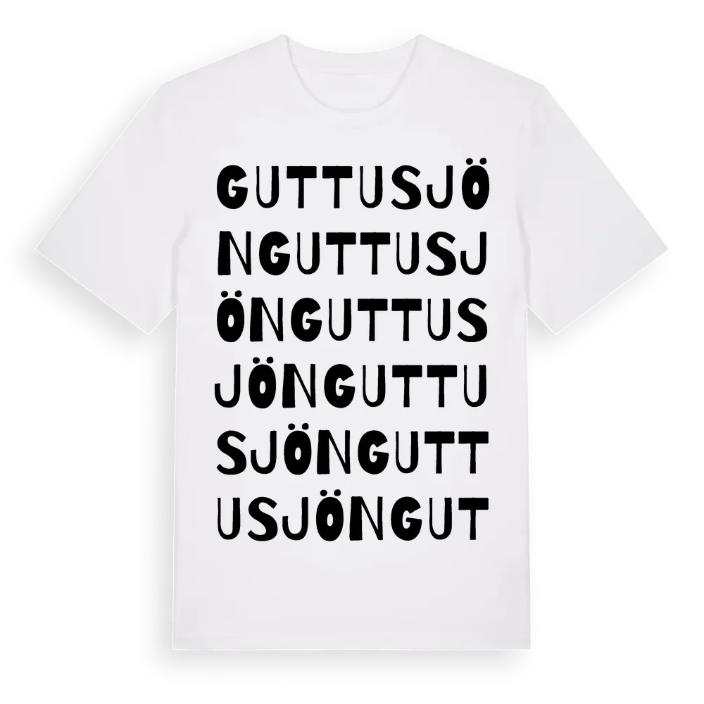 En ordlek byggd på Guttusjöns namn. Subtilt och klurig – ett motiv som bara de som verkligen känner platsen fullt ut förstår. Premium bomull, unisex – från byn Guttusjön i Dalarnas län.