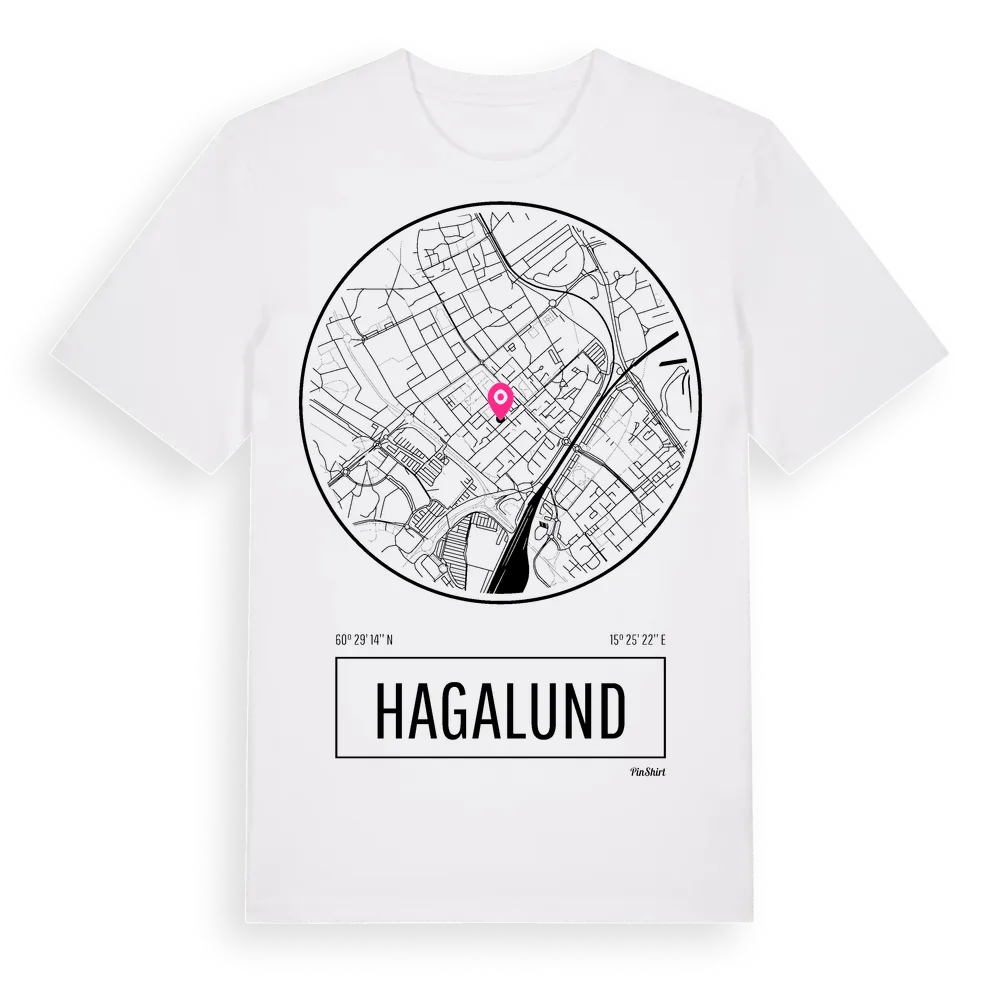 Ett rent, runt tryck med Hagalunds namn. Minimalistiskt och stilrent – perfekt för den som känner platsen utan att skrika det. Premium bomull, unisex – från stadsdelen Hagalund i Dalarnas län.