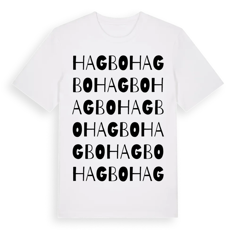 Hagbo ordlek t-shirt är inspirerad av byn Hagbo i Dalarnas län, Sverige. Tröjan är designad för dig som har en speciell koppling till platsen – oavsett om du bor här, har rötterna här eller bara älskar Hagbo.