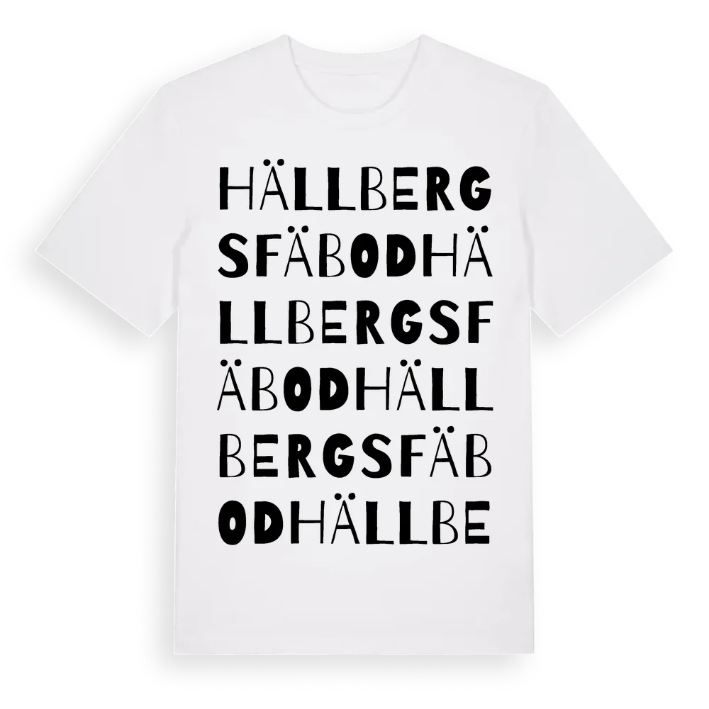 Hällbergs Fäbod ordlek t-shirt är inspirerad av Hällbergs Fäbod i Dalarnas län, Sverige. Tröjan är designad för dig som har en speciell koppling till platsen – oavsett om du bor här, har rötterna här eller bara älskar Hällbergs Fäbod.
