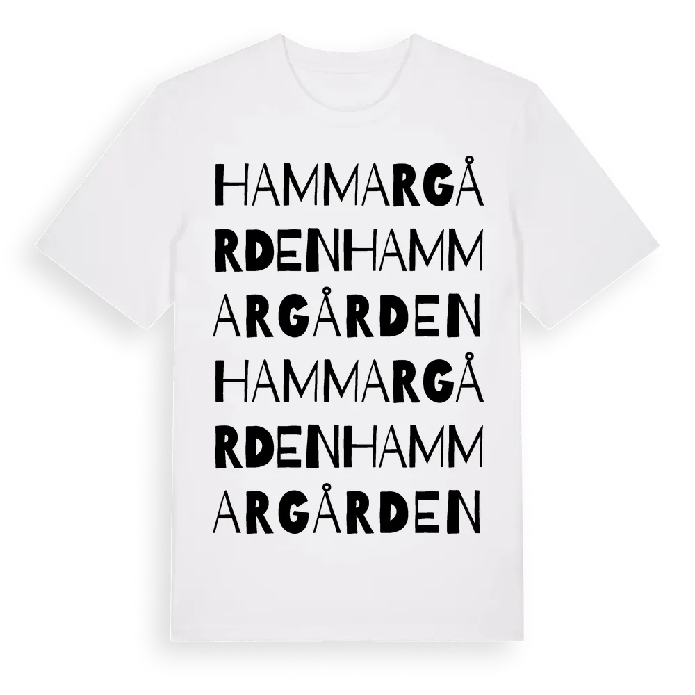 Hammargården ordlek t-shirt är inspirerad av Hammargården i Dalarnas län, Sverige. Tröjan är designad för dig som har en speciell koppling till platsen – oavsett om du bor här, har rötterna här eller bara älskar Hammargården.