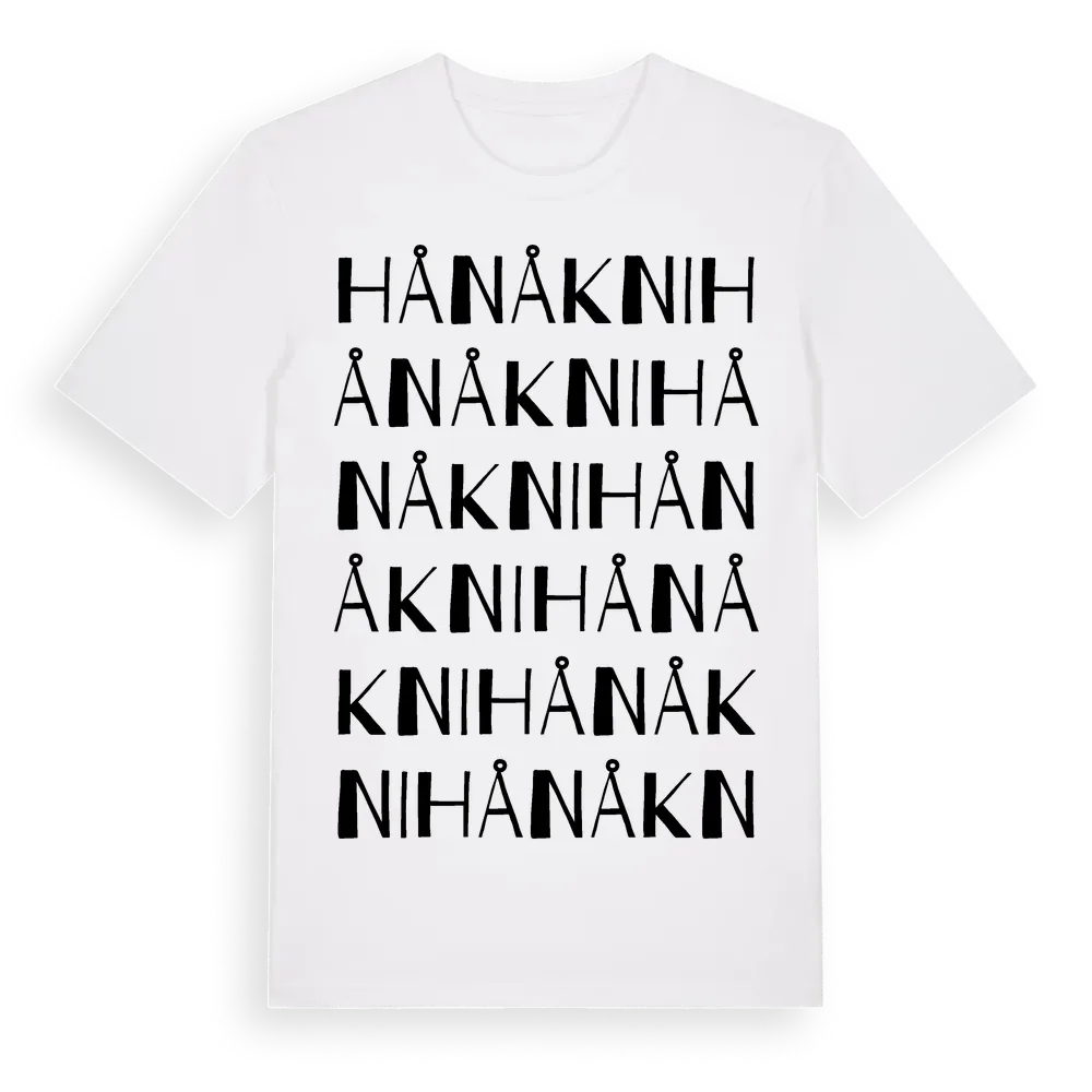 Hånåkni ordlek t-shirt är inspirerad av stadsdelen Hånåkni i Dalarnas län, Sverige. Tröjan är designad för dig som har en speciell koppling till platsen – oavsett om du bor här, har rötterna här eller bara älskar Hånåkni.