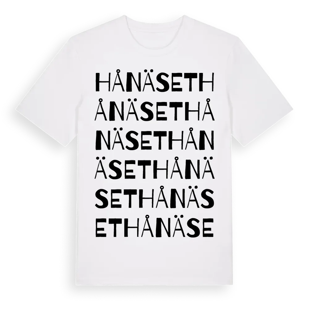 Hånäset ordlek t-shirt är inspirerad av byn Hånäset i Dalarnas län, Sverige. Tröjan är designad för dig som har en speciell koppling till platsen – oavsett om du bor här, har rötterna här eller bara älskar Hånäset.