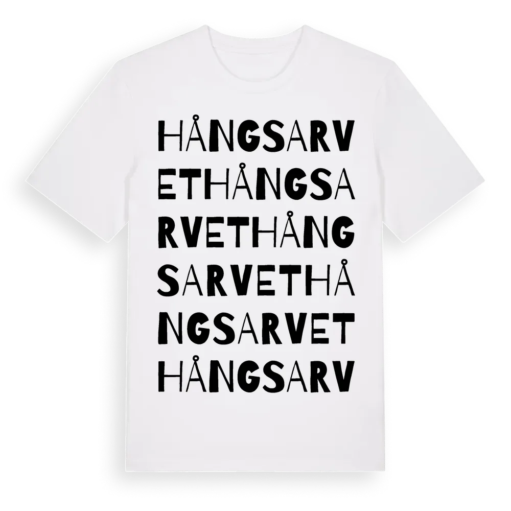 Hångsarvet ordlek t-shirt är inspirerad av byn Hångsarvet i Dalarnas län, Sverige. Tröjan är designad för dig som har en speciell koppling till platsen – oavsett om du bor här, har rötterna här eller bara älskar Hångsarvet.