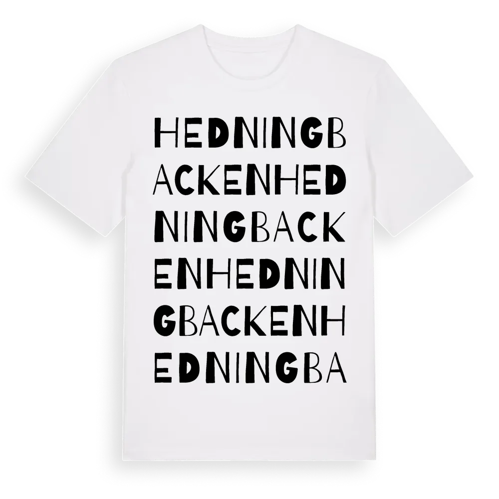 Hedningbacken ordlek t-shirt är inspirerad av byn Hedningbacken i Dalarnas län, Sverige. Tröjan är designad för dig som har en speciell koppling till platsen – oavsett om du bor här, har rötterna här eller bara älskar Hedningbacken.