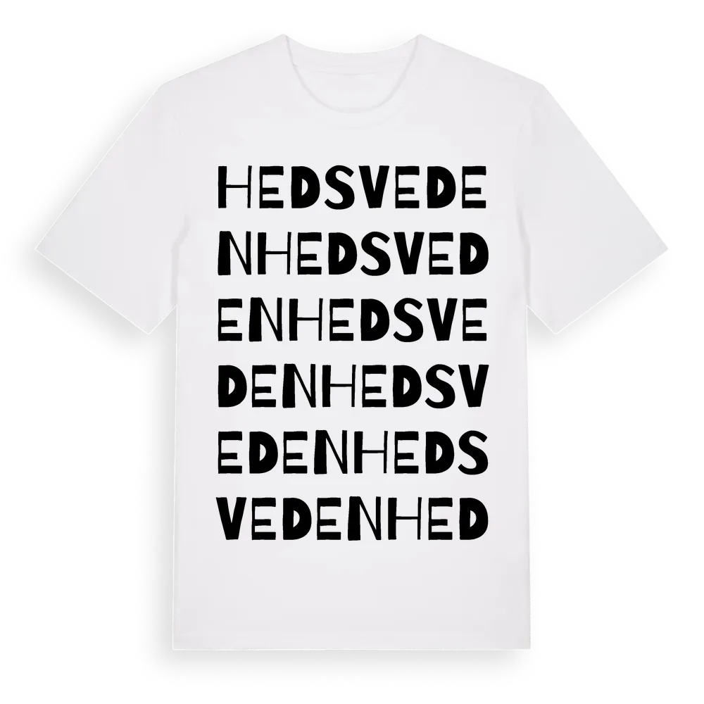 Hedsveden ordlek t-shirt är inspirerad av byn Hedsveden i Dalarnas län, Sverige. Tröjan är designad för dig som har en speciell koppling till platsen – oavsett om du bor här, har rötterna här eller bara älskar Hedsveden.