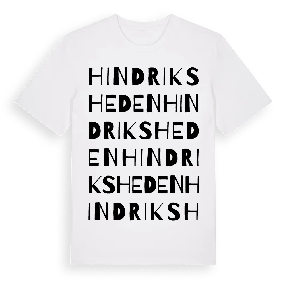 Hindriksheden ordlek t-shirt är inspirerad av byn Hindriksheden i Dalarnas län, Sverige. Tröjan är designad för dig som har en speciell koppling till platsen – oavsett om du bor här, har rötterna här eller bara älskar Hindriksheden.