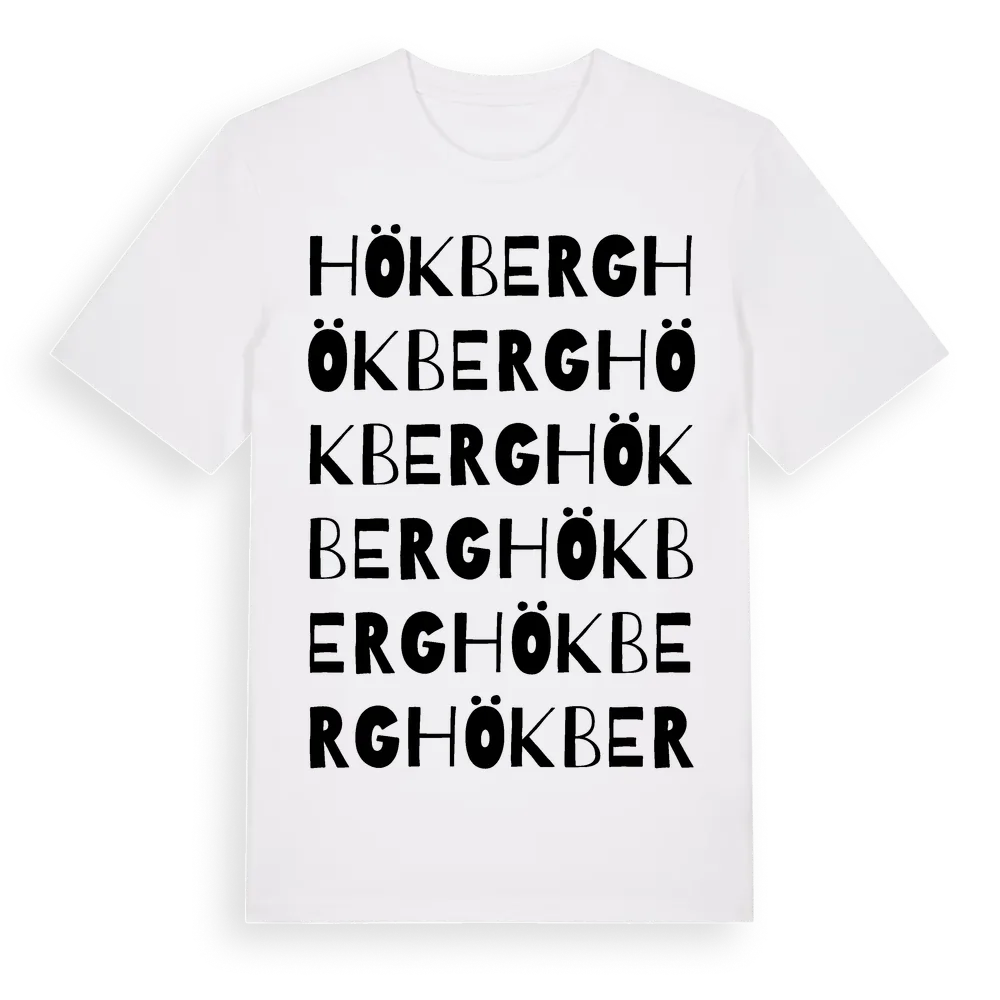 Hökberg ordlek t-shirt är inspirerad av byn Hökberg i Dalarnas län, Sverige. Tröjan är designad för dig som har en speciell koppling till platsen – oavsett om du bor här, har rötterna här eller bara älskar Hökberg.